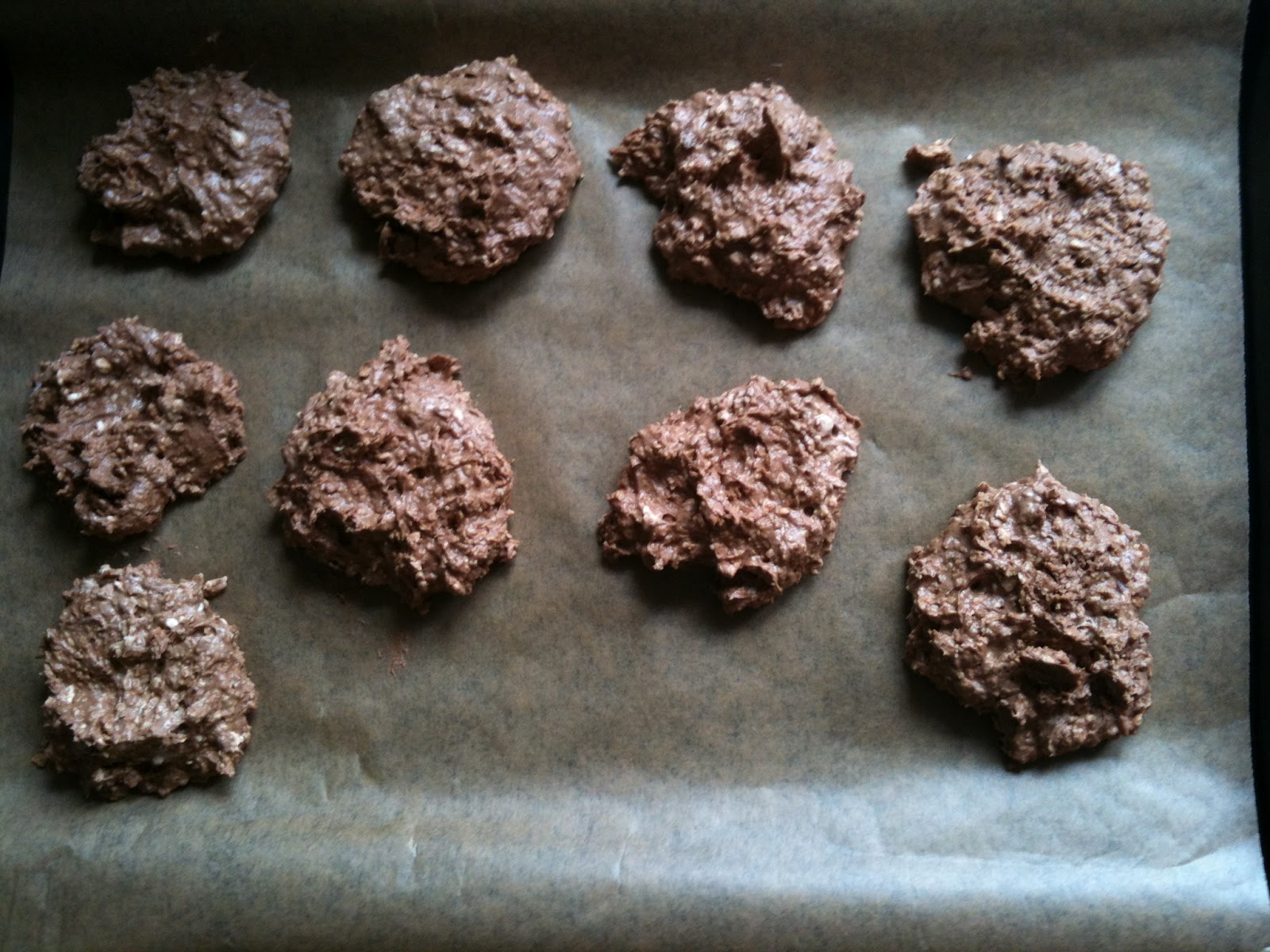 5) Place spoonfuls of the mixture onto the baking parchment (leaving a little room for them to spread out)