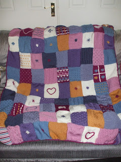 The first one I want to show you is my Knitted Patchwork Style Throw. I have been working on this on and off for years now, I would knit tirelessly for a couple of weeks then leave it to one side and not pick it up again for maybe months. However about 6 months ago, I decided with only a few squares left to do on it that I was going to finish it once and for all, and it's something I'm actually really really proud of.