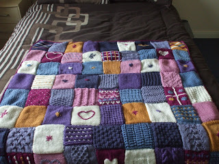 But finally I did get them all and here is the finished product. I would say that I started this originally at least 5 years ago, but each square probably took between 2 and 4 hours to knit depending on the difficulty level and also any extra embroidery or embellishment which had to be added.