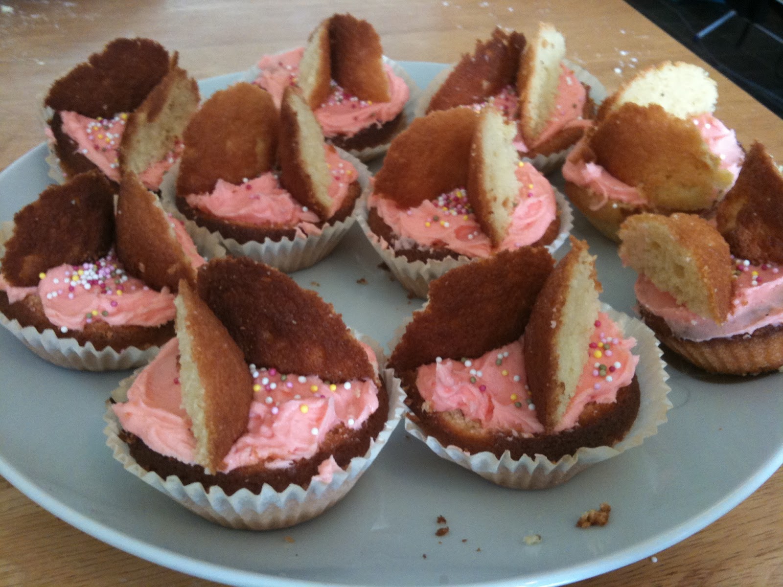 3) Butterfly Cakes with Pink Icing and Sprinkles